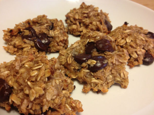 The final product was even better then we expected! The bananas held the cookies together nicely while the honey and cinnamon gave it just the right amount of sweetness. But what really put them over the edge was the chocolate chips and toasted coconuts….they are definitely a new favorite! 4 year old approved too!